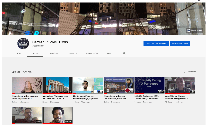 Check out our brand new German Studies youtube channel with MentorInnen videos from some of our German Studies majors, full of tips and good ideas based on their studies, travels and learning German at UConn for several years; talks from the “Decolonizing Area Studies” initiative; and a new project entitled “Passionate Humanities, spearheaded by Prof. Bronner.