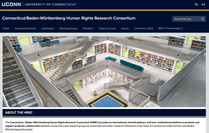 The Connecticut/Baden-Württemberg Human Rights Research Consortium (HRRC) provides an international, interdisciplinary, and inter-institutional platform to promote and support academic collaboration on a variety of human rights topics between researchers and research groups at fifteen universities and other research institutions in the partner states of Connecticut (USA) and Baden-Württemberg (Germany). Inspired by the rich exchange within and beyond the University of Connecticut’s Human Rights Institute (HRI) and the Freiburg Institute for Advanced Studies (FRIAS), the Consortium aims to advance human rights research, education, public discourse, and political decision-making in ways that build bridges between academia and everyday life.