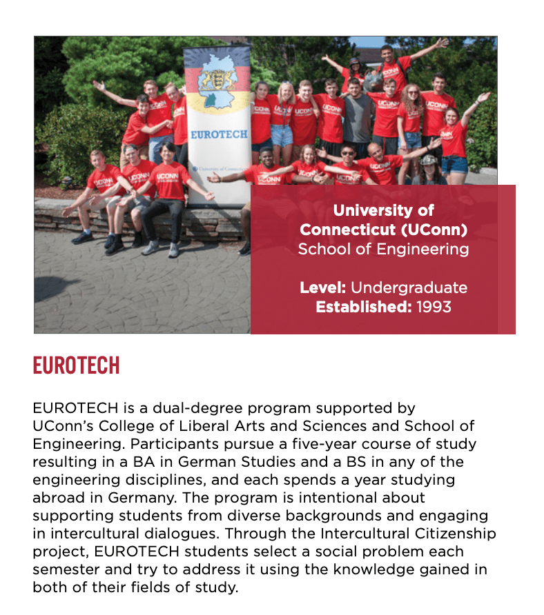 The September 2022 issue of INSIGHT Into Diversity Magazine devotes the majority of its space to an important award in STEM: “INSIGHT highlights innovative higher education institutions and organizations working to recruit and retain underrepresented individuals in science, technology, engineering, mathematics, and beyond with our 2022 Inspiring Programs in STEM Award.” This year, UConn’s dual-degree EUROTECH program is among the recipients, and we wish to celebrate, first and foremost, our amazing students in the program and thank all those who contribute to the ongoing success of EUROTECH, especially the School of Engineering and the College of Liberal Arts and Sciences.