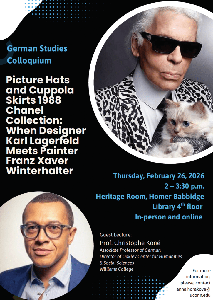 Prof. Christophe Koné to deliver first Spring 26 German Studies Colloquium Lecture on the 1988 Chanel Collection, Karl Lagerfeld and Franz Xaver Winterhalter, Thursday, February 26th, 2-3:30pm