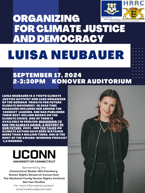 Luisa Neubauer, Climate Justice Activist, to visit UConn September 17th, 2024