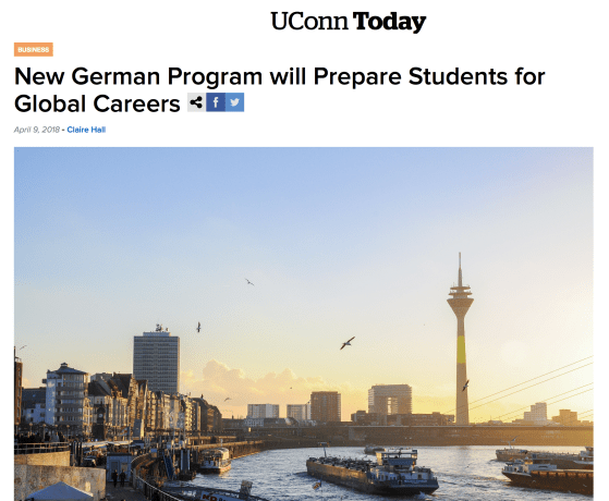 EUROBIZ is gathering attention, this time from UConn Today which provides insight into the program with information provided by several stake holders and program builders, including the Co-Directors, Prof. Gerlinde Berger-Walliser (BUS) and Prof. Anke Finger (CLAS). The German Consul General, Ralf Horlemann, also strongly supports this new dual degree: “We need internationally and interculturally […]